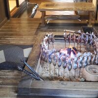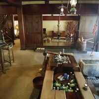 伝統ある温泉旅館とはまた違った雰囲気と露天風呂の多さに惹かれて宿泊を決めました。 ロビーでは湧出水で冷やされた飲み物が売られ、吹き抜け天井の囲炉裏があり、入館と共に一気に異時代へ足を踏み入れた感じがします。 スタンダードなプラン