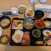 熊本の食を堪能しようと「郷土料理で1泊2食プラン」を利用しました。和食系の料理をイメージしていたのですが、実際は主体の和系に、コンソメロワイアルやビーフシチューもある和洋折衷でした。おまけに郷土中華という太平燕もありました。また、デザートにはいきなり団子が添えられていて、最後まで熊本でした。朝食のお膳も和を主に、オムレツやソーセージもありました。熊本の人は同時に和も洋もと欲張りなのでしょうかね。