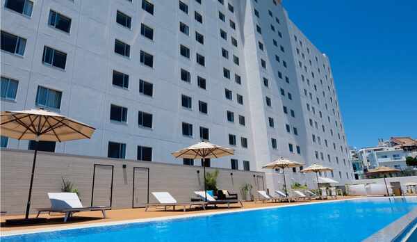 モノレール安里駅すぐ近く、便利な場所。国際通りのマキシ市場などへも5,6分であるけど便利なところですが、意外に静か。 高層ビルの最上階にプール(有料です。)、しゃれたバーがあって都市リゾートとしては楽しめる。朝食バイキングは1Fと13階のレストラン2か所が選べる。1Fレストランは時間帯をアプリで予約するシステム。 部屋はまあそこそこの広さで清潔です。