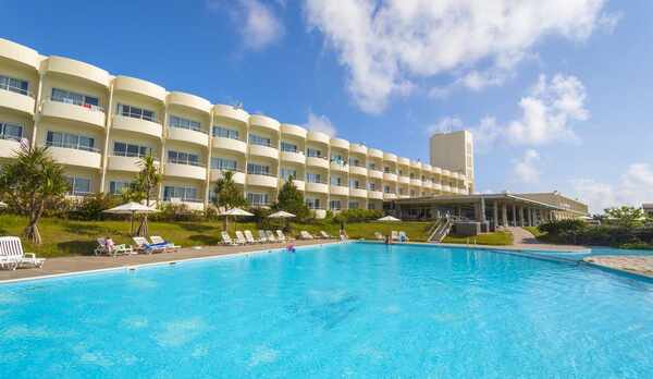 久米島のイーフビーチ直結のホテル。目の前に白い砂浜とエメラルドグリーンの海が広がるロケーションが魅力。ビーチサイドには大浴場を併設しており、海の大パノラマを眺めながらくつろぎの時間を過ごすことができます。青色のファブリックが目を引く客室は、さまざまな種類のツインを用意。オーシャンビューの客室や、さとうきび畑やのどかな街並みを眺められる客室などがあります。夕食は、心地よい海風に包まれるオープンテラスにてBBQを楽しめます。朝食は、チャンプルーや沖縄そば、タコライスなどの沖縄料理を取り揃えたバイキングです。敷地内には、屋外プールやジェットバス、フィットネスジムなどを併設しています。