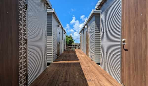 まだ新しいという事もあり、とても綺麗な部屋でした。洗濯機、乾燥機も無料で使えるのが良かったです。 シャワー、トイレは共有ですが清潔にされていました。徒歩で行けるところに居酒屋があります。チェックインは空港の正面の事務所になります。スタッフの方もとても親切でした。