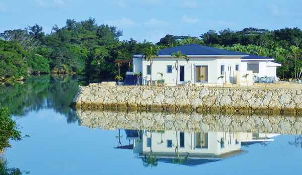 マングローブラグーンの水際に佇む一棟貸し切りのヴィラ。敷地内には、サンベッドを配したテラスやプライベートプールを併設。夕陽に染まる空や満天の星を眺めながら、心癒やされる時間を過ごせます。2LDKの客室は、南国リゾート感溢れる空間。ハンモックを備えたリビングや2つの寝室のほか、冷蔵庫やワインセラーを設置したキッチンや、プールに面した浴室があります。屋外のアウトドアコーナーでは、BBQを楽しむことができ、シュノーケルセットやシーカヤック、自転車などのレンタル品も充実。ヴィラまでは、下地島空港より車で約5分です。
