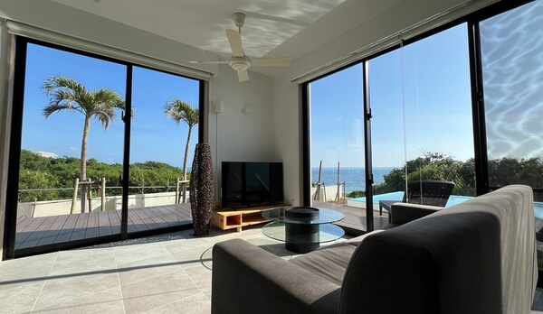 2泊3日で宿泊しました。リゾート感のある内装でとても雰囲気が良かったです。部屋からは宮古ブルーの海の絶景を眺めることができます。またその海を眺めながらのプライベートプールやジャグジー。非日常な空間を堪能できました。 電子レンジやコーヒーメーカー、掃除機も置いてあり、設備もとても良かったです。また宮古島に行く時は利用したいです。
