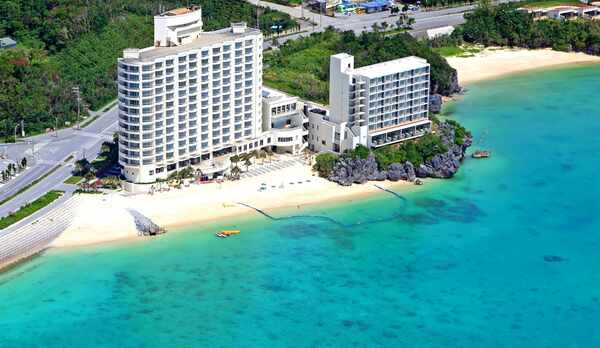 目の前にプライベートビーチがあり、全客室名護湾を一望できるオーシャンビューのリゾートホテル。天気の良い日にはサンセットを拝め、眼前に広がるビーチでマリンアクテビティも楽しめます。本館と東館からなり、本館はキッチン付きの客室から最大約5名まで宿泊可能な和洋室などを用意。東館はすべてがオーシャンフロント、崖の上から突き出でるような構造となっており泳ぐ魚を見ながら海を間近に感じられます。本館、東館にはいずれもバイキングレストランがあり、地元の旬の食材を使った和洋+琉球料理をいただけます。