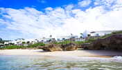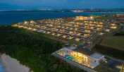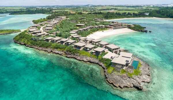 宮古島から橋を渡った離島に建てられた、暮らすように滞在出来るリゾートタウン。ドーム型のエントランスの向こうには真っ青な海が一望でき、ビラハウスへ向かう大階段が続きます。目の前に海を望む約13万㎡の広大な敷地の中に、プール、またはジャグジー付きの約100邸以上のビラハウスや、「首里城」をモチーフにし、屋上は展望デッキになったホテル棟「首里ハウス」などが立ち並ぶ姿は街のよう。室内は、南国情緒あふれる雰囲気です。食事は、沖縄の食材を取り入れた、日本料理や洋食などをいただくことができます。
