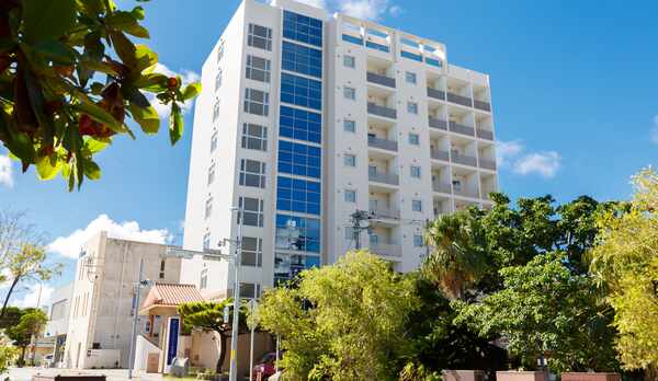 沖縄の宮古島に建ち、全室にキッチンや食器類・洗濯機などを備えた長期滞在にも便利な宿泊施設です。客室タイプはダブル・ツインルーム、また、最大4名まで利用できるファミリールームなど。バス・トイレはすべてセパレートタイプで、調理器具や炊飯器、自転車などの貸出備品も充実しています。車でのアクセスは、宮古空港より約12分、下地島空港より約18分。バスでのアクセスは、宮古協栄バスの停留所「パイナガマビーチ」または、中央交通の停留所「平良港」が最寄りです。