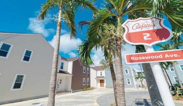 カリフォルニア州サンタ・バーバラの街並みをイメージした、白い壁と赤い屋根の外観が目を引くコンドミニアムホテル。ヤシの木やブーゲンビリアが南国の雰囲気を演出しています。宿泊者が利用できるパブリックスペースには、ドリンクやスナック菓子のほか、沖縄ならではのブルーシールアイス、豊富なレンタルグッズなどを用意。ジェルキャンドルなどを手作りできる体験コーナーもあります。テラス席でも味わえる朝食は、ブレッドやシリアルなどの軽食を揃えています。全室広さ42㎡以上のゆとりのある客室は、家族連れやグループにも適したファミリールームやトリプル、ツインなどを用意。「マーメイド」をコンセプトにした客室もあります。洗濯機と浴室乾燥機を完備しており、長期滞在にも便利です。