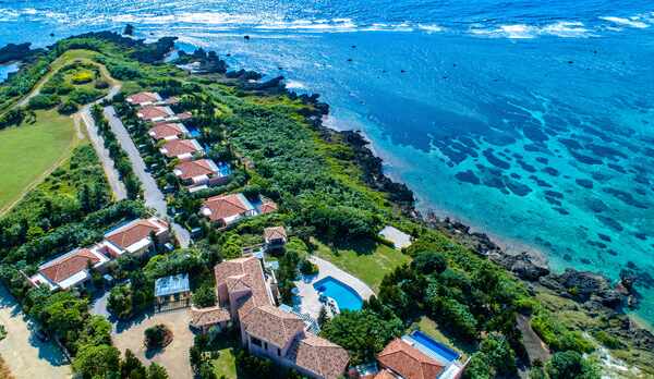 宮古ブルーの海が目の前に広がる、リゾート施設内に建つホテル。全室温水プライベートプール付きのヴィラで、リゾート気分を満喫できます。ヴィラ内には家電・食器類をはじめ、ワインセラーやコーヒーメーカーを揃えたキッチンを完備。広々としたリビングとベッドルームがあり、ジェットバスやサウナも用意しています。アウトドアリビングでは、心地よい海風を感じながらぜいたくな時間を過ごせます。約6,700㎡もの敷地に、4ベッドルームを備えた2階建ての邸宅風ヴィラや、エメラルドグリーンの海を眺められるヴィラなどを揃えています。夕食は鉄板焼きや和食、イタリア料理などリゾート内のレストランでいただけます。朝食はルームサービス、またはレストランでビュッフェです。