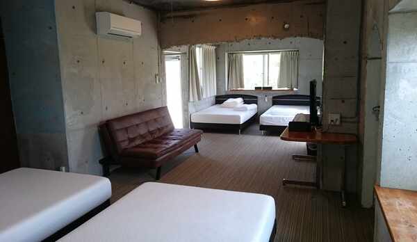 バストイレ付きの個室に泊まりました。冷凍冷蔵庫あり。アメニティ類はDHC。エアコンの効きも 良い。延長コードにコロコロ、殺虫剤・ベープマットなど必要と思われるものはひと通り部屋にありました。共同スペースにも調理器具や食器はもちろんインスタントコーヒーなどの飲み物も充実。 全体的に手作り感満載の建物で、まわりには何もないところですが何より掃除が隅々まで行き届いており、清潔で安心でした。 レンタカーがあればさほど不便な場所では無いです。リーズナブルでおすすめできます。