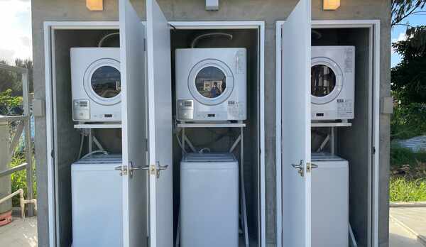 平良中心部にあり、便利。女性ドミ1泊2500円。6人部屋だけど、目論見通り貸し切りだった。とーってもきれい。 共同エリアもとーってもきれい。キッチンはないけどレンジとウォーターサーバー、冷蔵庫有り。 シャワールームもトイレもとてもきれいに保たれていた。