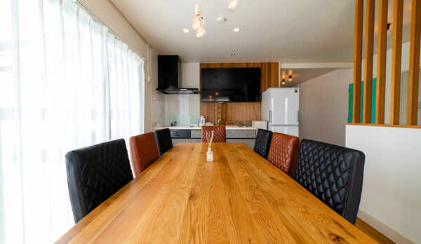 沖縄・宮古島に位置する、白亜の外観が目を惹く宿泊施設。約200坪の敷地内は、ヤシの木や花々で彩られています。1階には、大型ソファを備えた40畳のリビングダイニングや、調理器具や食器類を揃えたシステムキッチンを完備。2階には、セミダブルベッド1台とシングルベッド2台を配した洋室や、エメラルド色の海を一望できる広々としたテラスを併設しています。水平線に沈む夕陽や空一面に広がる星を眺めながら、くつろぎの時間を過ごすことができます。海までは徒歩約1分。スキューバダイビングやSUP、シュノーケリングなど、さまざまなアクティビティを楽しめます。