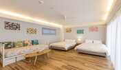 目の前にプライベートビーチが広がる、アジアンコテージ。直接海に向かうことができるテラスには、ジェットバスとデッキチェアをしつらえています。室内は、広さ約47㎡のワンフロアタイプ。調理器具を揃えたアイランドキッチンや、ドラム式全自動洗濯乾燥機を完備。ダブルベッド2台と、ゆとりある大きさのソファを配しています。ビーチでは、BBQやマリンスポーツ、水上バイクなどを楽しむことができます。