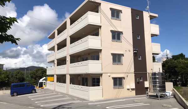 うるま市屋嘉にあります。無料駐車場あり。101号室でチェックインを済ませ、エレベーターを利用して4階の部屋に宿泊しました。 部屋にはテレビ、大きめの冷蔵庫、電子レンジ、電気ポット、調理器具付きキッチン、エアコン、空気清浄機、洗濯・乾燥機、ドライヤー、アメニティがあり、wifi 環境も良かったです。 建物近くにはコンビニや食堂がありますが、スーパーは近くにないので、自炊される方は事前に購入されると良いと思います。