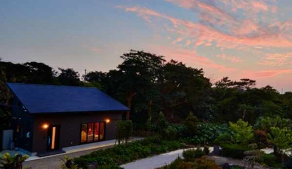 沖縄の自然の中で暮らしているかのような滞在を楽しめる一棟貸のヴィラ。木の温もりに包まれる室内は、全面ガラス張りの明るい空間です。爽やかな風が吹き抜けるリビングダイニングには、調理器具や調理家電を揃えたキッチンを完備。自然光が差し込むベッドルームの窓の向こうには、ハンモックを設置しています。スタイリッシュな雰囲気のシャワールームも用意。長期滞在に便利な乾燥機能付き洗濯機も完備しています。周辺には、飲食店やスーパーなどが点在。「今帰仁城跡」や「美ら海水族館」への観光に便利なロケーションです。