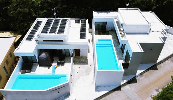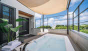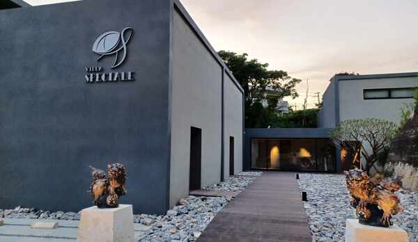 サトウキビ畑や沖縄の原生林に囲まれた丘の上に佇む一棟貸しの貸別荘。コンクリート造りのスタイリッシュな外観が特徴。敷地内には、プライベートプールやアウトサイドダイニングを併設。心地よい海風や鳥のさえずりに包まれながら、心癒やされる時間を過ごすことができます。洗練されたデザインの室内は、広さ167㎡の広々とした空間。開放的なガラス張りのリビングやキングサイズの天蓋ベッドを配した寝室、ジェットバス付きの浴室などがあります。調理器具を備えたキッチンやBBQセットなども完備。周辺の「瀬底ビーチ」まで車で約5分、「美ら海水族館」まで車で約20分のロケーションです。