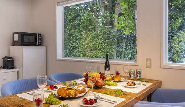 広々としたプライベート空間で過ごすことができるグループ向けのヴィラ。一棟貸切の一軒家には、ゆとりあるソファを配したリビングや、畳スペース、複数のベッドルームを用意しています。ダイニングキッチンには、最大7名が座ることができるL字カウンターを設置。冷蔵庫や電子レンジ、コーヒーメーカーなども揃えています。長期滞在に便利な洗濯機や乾燥機も完備。庭ではBBQを楽しむことができます。敷地内には駐車場も用意。「美ら海水族館」や瀬底島など、観光スポットへのアクセスも良好なロケーションです。