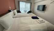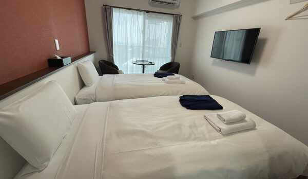 石垣島米原ビーチそばの2019年12月オープンのホテル。 全て平屋で1棟10部屋ぐらいで4棟か5棟あります。 私はダブルのシングルユース。 オープン価格で安かったです。 コンセントは6口ありましたがベッドにはないです。 テレビ・エアコン(無料)・冷蔵庫・電気ポットあり。 電子レンジは管理棟にありました。