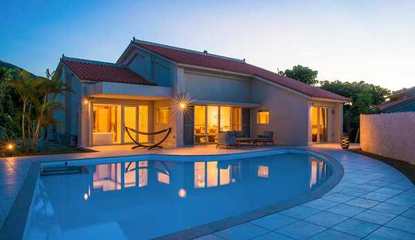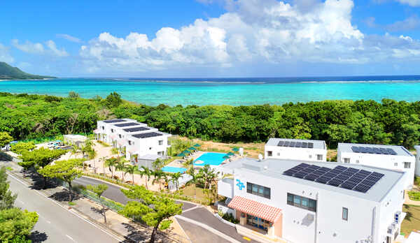 エメラルドグリーンの海を望む1棟貸しのヴィラ。ヨーロッパ人のオーナーが開発・設計をした地中海風の建物で、リゾート気分を満喫できます。室内には、3つのベッドルームや大きな窓を設えたリビングを用意。ゆとりのある空間でくつろぐことができます。キッチンには、IHコンロや炊飯器、オーブンレンジなどを完備。調理器具や食器類も揃えています。朝はフォカッチャサンドやフルーツヨーグルト、オニオングラタンスープなどの軽食をいただくことができます。敷地内には、珊瑚礁やヤシの木を眺望するプライベートプールを併設。ダイニングテラスでは、石垣島の雄大な景色を眺めながらBBQをすることができます。