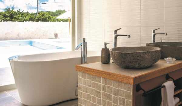 広大な八重山の自然に囲まれた1棟貸しのヴィラ。屋外にはプライベートプールを完備しており、リゾート気分を満喫できます。スタイリッシュなデザインの室内には、開放的なリビングダイニングや、調理家電を揃えたキッチン、2室のベッドルームを用意。自然に優しい洗剤やソープなど、こだわりのアメニティも揃えています。長期滞在に便利な洗濯機も設置。テントサウナやBBQ機材をレンタルすることもできます。徒歩約1分の場所にある「米原ビーチ」では、クリアカヤックやシュノーケリングなどを楽しむことができます。