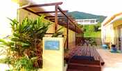 川平公園バス停から徒歩2~3分の立地です。 3階建ての建物は、1階がフロント、共同トイレ/シャワー、2階にこじんまりとした客室(ツインとシングル)が並んでいます。(3階はペントハウスの様です) 階段脇に、電子レンジ、冷蔵庫とウオータージョグがあります。 屋上からは川平湾が少し見え、そこで夕食しました。 (夕やけが見えなかったのは、残念) 市街地から日帰りせず、川平湾の夕方→朝方(干潮/満潮)の変化を楽しむにはよいかもしれません。