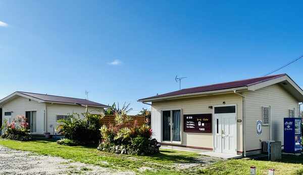 やんばるの大自然に囲まれた沖縄古民家風のコテージ。広さ68㎡の家族連れやグループに便利な客室や、少人数向けの客室などを用意。全室にキッチンやBBQテラスを完備。炊飯器や洗濯機などの家電を設置しており、自宅のように過ごすことができます。敷地内には、食事処やフリースペースを設けた交流館を併設。「奥やんばる食堂」では、ソーキそばや定食などをいただくことができます。「民具資料館」では、さまざまな民具や奥区の伝統行事や風景写真がパネルとして展示されています。辺戸岬まで車で約10分です。