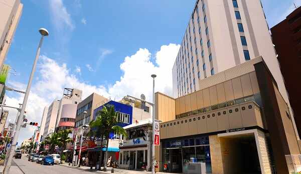那覇空港からゆいレール「県庁前駅」へ、徒歩で約3分。国道58号線沿い、国際通りへ徒歩で。