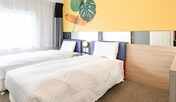 那覇空港到着が23時過ぎなので、空港近くで4人一部屋で泊まれるホテルを探していたところ、ここを見つけました。 ホームページからの予約が一番安く、素泊まりで15000円弱。 お部屋は最上階のロフトルーム。スーツケースを広げるスペースも確保でき、思っていたよりも広く感じました。 ロフト部分はダブル仕様。友達同士の利用だとシングル×2ではないので要注意です。 コンビニまで5分以内、近くにはパン屋さんもあり。駅までは少し歩きます。