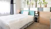 全室キッチン付きのアパートメントホテル。落ち着いた色合いを基調とした客室は、ダブルベッドを配した客室を用意。バス・トイレはセパレートタイプです。すべての客室でWi-Fiの接続が可能。洗濯機や冷蔵庫、電子レンジなどを完備しています。簡易キッチンセットのレンタルも行っています。ホテルは、ゆいレール旭橋駅から徒歩約14分です。
