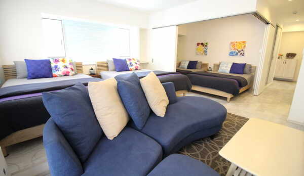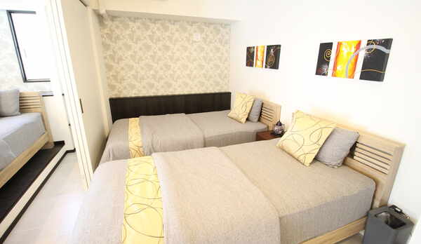 国際通りから徒歩10分以内で、とにかく大人数でお値打ちに宿泊したい人には、向いています