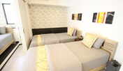 新装なった公設市場から2,3分の、仮設公設市場のまん前にあります。市場からもすぐ近くですが、隣にステーキ屋さん(やっぱりステーキ市場近店)・Barなど飲食店があり買物・飲食に大変便利な立地。 一人旅でしたが、広さからツインルームを選択しました。室内は洗濯機にキッチンもあり、市場で買って調理もありです。 一点、check-in時に注意すべきこと。入口のcheck-in機入力後、下方に表示される暗証番号を必ずメモっておくこと。私はこれを忘れ、入室まで2往復しました。 ホテル前の以前あった仮設市場がすでに取り壊されパーキングになっており、ベランダからの見晴らしもよかったです。