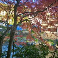 川端康成で有名な宿ですが、秘湯を守る会会員の宿でもあります。駐車場に車をおいて、小道を下り、橋を渡ったところに建物があります。落ち着いた静かな宿で、モミジが綺麗でした。温泉は2箇所、露天風呂付きの岩風呂と階段を降りた源泉に近そうな雰囲気の良いところがあり、時間帯で男女入れ替えと自由に入れる貸切に分かれていました。かけ流しなので、露天風呂は温めでした。