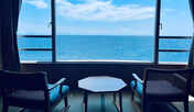 ベッド付き和洋室は、それぞれコンセプトの異なる8つの客室タイプ。そのなかで3階にある「青波」は、畳にベッドが配された和モダンの客室です。バルコニーを含み50.3㎡の広さで約3名まで宿泊が可能。室内にはシモンズ社製のベッドと、海を眺めることができる位置にソファーとテーブルが備わっています。また海側の大きな窓の前にあるのは、デイベッド。寝ころびながら海を眺めてのんびり過ごすことができます。