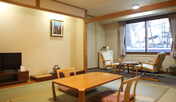 お部屋は新館の「飛燕閣」と旧館の「聴水閣」があり、今回は旧館の「聴水閣」洋室ツインに宿泊しました。お部屋はトイレなどの施設で少し古さを感じますが、掃除も行き届いており気持ちよく宿泊することが出来ました。 また食事は、夕食・朝食ともにバイキングですが夕食のメニューが多くて食べきれない数です。特に陶板焼きを自分でチョイスした具材で食べられるのは嬉しいサービスですね。ほかにも朝食のレストラン会場では窓際の餌付け場所に「エゾリス」が降りてきて可愛い姿を見せてくれて、食事を一層楽しませてくれて感激でした。 結婚記念日でしたが、とても良い思い出を作ってくれた思い出の宿になりました。