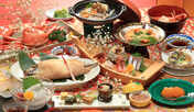 加茂湖の畔に佇む歴史ある旅館。安政5年に前身となる料理屋として開業した時代から受け継いできた食事を堪能できます。夕食は、伝統のレシピによる自家製イカの塩辛など、佐渡沖の漁場で水揚げされた新鮮な魚介類を味わうことができる海鮮料理です。朝食は、佐渡の郷土食「巻いごねり」やその場で焼くアジの開き、佐渡産の炊き立てコシヒカリなどをいただけます。佐渡の山並みを眺めながら温泉に浸ることができる、屋上展望露天風呂も魅力。広々とした大浴場も併設しています。客室は、落ち着いた雰囲気の和室などを揃えており、加茂湖を眺めながらくつろぎの時間を過ごすことができます。