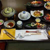 常連客だった義母、ダンナさんと1泊しました。 2人からは宿の事を色々聞いていましたが、やっと今回訪れる事ができました。 お風呂はこじんまりしています。 食事は夕食、朝食ともに部屋食で、のんびり楽しめました。 夕食には、アワビ、毛がになどが含まれていました。