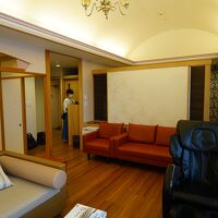 鴨川シーワールドに行くため、前日にこちらの旅館を利用しました。 誕生寺の目の前、鯛の浦遊覧船の乗り場のすぐ近くです。 今回、5歳の息子と私の兄と利用しました。 お部屋はデラックス和洋室 6畳の畳のお部屋に、大きなソファーとマッサージチェアがあるリビング その横にベッドルームがあります。 テレビはリビングとベッドルームそれぞれにあります 建物は古いのでしょうが、お部屋は清潔感あり 広いのでのんびりくつろげました。 特に海とテレビがよく見えるマッサージチェアは何度も利用しました。 またベッドはシモンズ製でとても寝心地がよく また多少動かせるので2つのベッドをくっつけることができ 小さい子供連れにはとても助かりました。 お食事は、完全個室のお食事処でいただきます 大きな窓からは海が見渡せ、 出入口の扉もしっかり閉まるので、ゆっくり食事ができます。 お食事の内容ですが、ボリュームがあり お味もよく、お酒がすすみます 子供用のメニューもとても美味しそうでした 最上階にあるお風呂は海がよく見え この日はお天気がイマイチでしたが、お天気の良い日は 星空も楽しめるでしょうね。 の~んびり心からくつろげる いいお宿でした。