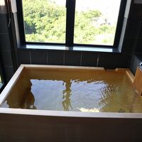 12月の平日に夫婦で一泊させて頂いた。 建物は和風ペンション+α。サービスは旅館。 宿泊者にとっては一階は玄関のみ、二階は客室のみなので客室から一歩も出ない一泊もあり得るお籠り宿。実際そうなった。 客室は和室。自分達は完全な和室だったが、ベッドが入った和洋室の客室もある。 清掃状態は極めて良好。空気清浄機はエアドッグ。天井が高く閉塞感は皆無。 近代的な設備を求める事がなければ理想的な客室に思う。 全室掛け流しの温泉付き。 自分達の部屋は檜湯舟だったが、伊豆石の浴槽を備えた客室もある。 温泉は岡源泉。約300m離れた場所にある湯端分湯タンクから源泉の供給を受けているが、送湯中の放熱で湯舟に注がれる頃には41℃前後にまで温度が下がる。加水されているかは微妙だが、加熱スイッチがある事から加水は非合理なので可能性は低いだろう。 1分間に3~4Lの湯が掛け流されており、湯の鮮度は良好。 給湯温度が低いので、熱湯好みは壁の加熱スイッチを押すと給湯温度が70℃以上になるので適温になるまで待つ。(加熱し続けると煮え湯になるので注意) 湯はあっさりした浴感で、実際ナトリウムイオンなどの陽イオン、塩化物イオンなどの陰イオンは伊東温泉でも少なめ。一方でメタ珪酸は1kg当たり60mg近く含有されているので、いわゆる美肌の湯に相当する。 食事は非常に良い。 刺身はマグロやサーモンなどの定番は盛られておらず、地物中心にまとめられていた。地物が良いとは限らないが、こちらの刺身に関してはどれも旨かった。 その他の料理も和洋折衷でどれも美味しく戴いた。 強いて難点を書けばボリューム多過ぎ。50代以降の平均的な食の太さでは捌き切れない量に思う。 客層も好い。『静かに過ごしたい』層が集い、しかも皆さん客室のドアを開けずに客室に籠って温泉を楽しむので、自分以外に客がいるのか分からないくらい静かに過ごす事ができた。 従業員が客室数くらいおいでで、夕食の下膳と布団敷きにわらわらと人が入ってきてあっという間に仕事を終えて出て行かれたのが印象的。 商店街までの道のりが急坂で距離もあり、伊東の街を散策した方には向かないが、何度も伊東に来ていて新鮮な湯を独り占めし、旨い料理を食べる事に特化した旅行をしたい大人にお薦めし易い宿。