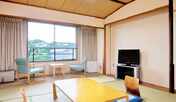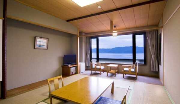 全室から琵琶湖を望む景色が魅力の「休暇村 近江八幡」。大浴場をはじめ、ロビーやレストラン、宴会場からも琵琶湖を眺めることができます。客室は、和室とツインがあり、高台に位置する東館からは眼下に琵琶湖を、宮ヶ浜に面する西館からは浜辺と湖を一望することができます。温泉大浴場では、琵琶湖に浮かぶ沖島や比良山系を眺めながら湯浴みができます。食事は、近江牛や湖水魚、地元の野菜など近江の山海の幸を使用した会席料理または和洋ビュッフェ料理を用意。敷地内にはプールやキャンプ場を併設しています。