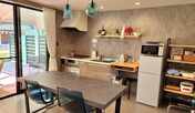 滋賀県北部・余呉湖の湖畔に位置する一棟貸しの貸別荘。豊かな自然に囲まれながら、プライベートな空間で心安らぐひとときを過ごすことができます。2棟あるメゾネットタイプの客室は、愛犬と一緒に過ごせる、約6名まで宿泊可能な客室を用意。客室には、調理器具が充実したキッチンやリビングなどの設備や、バスタオルやハミガキセットなどのアメニティも充実しています。また、約300㎡の広々とした専用庭を完備。庭は柵で囲まれているため愛犬の運動にも適しています。また、屋根付きのBBQスペースやテラスも備わっています。アクセスは、JR「余呉駅」から徒歩約7分、北陸自動車道 「木之本IC」から車で約5分のロケーション。駐車場も完備しており、キャンピングカーなどの車も駐車が可能です。