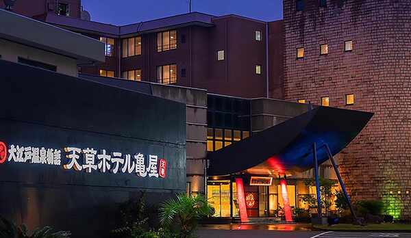 穏やかな海や天草の島々を一望できる高台に佇む、全室オーシャンビューのホテル。大理石造りの大浴場や波の音に包まれる開放的な露天風呂で、刻々と変化する空や海を眺めながら天草温泉の湯に浸かることができます。夕食は、車海老や伊勢海老など、天草ならではの新鮮な魚介類を使用した海鮮会席料理を味わえます。朝食は、炊き立てのご飯や味噌汁、焼き魚などが並ぶ和定食です。客室は、10畳の和室や二間続きのゆとりある和室、ベッドを2台配した和洋室などを用意。温泉露天風呂付きの離れも揃えています。ホテルまでは、JR「三角駅」より車で約15分。周辺には、世界遺産である「三角西港」や、「天草四郎公園」などがあります。