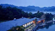 天空に浮かぶ豪華客船をイメージしたホテル「天空の船」。松島の多島海を望むプールやレストラン、客室は、天草の海と空を航海するような空間に設計されています。すべての客室には露天風呂があり、天草五橋や天草の海と島々を一望できるほか、一戸建のヴィラタイプの客室も用意されています。食事は、天草の海の幸やブランド地鶏「天草大王」など地元の食材を使用したイタリアンをいただくことができます。ホテル内には、海を見渡すプールや休憩スペースを併設。松橋ICより車で約60分のロケーションです。