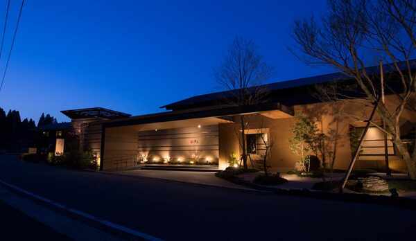 菊池の丘の上に建つ、豊かな自然に包まれたロケーションが魅力。全室に温泉風呂を設えた離れ客室で、くつろぎの時間を過ごせます。テラスやリビングからは、遮るものがない雄大な森の景色を楽しむことも。食事は、見晴らしのいいレストランの個室席にて用意。夕食は、あか牛や馬刺しなど熊本の味覚を堪能できる創作会席コースなどを、朝食は土鍋で炊き上げた地元のご飯や採れたての卵を味わえます。敷地内には広々とした大浴場も併設しており、地下約1,000mより湧出する温泉につかることができます。