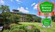 阿蘇の雄大な自然や外輪山を望む景色が魅力の「阿蘇 梅園 SPA RESORT」。緑白色の特徴ある温泉を引湯した野趣あふれる大浴場を完備。約1万坪の日本庭園や山々を眺めながら湯浴みができます。夕食は、地元食材や自家牧場産の和牛などを使用した会席料理を、朝食は、約20種類の多彩なメニューをビュッフェ形式にていただくことができます。庭園を一望する客室は、和洋室や和室、ツインを用意。巨木や巨岩でしつらえた散歩回路を抜けた先には、多様な温浴施設が揃う「どんどこ湯」があります。熊本ICより車で約40分のロケーションです。