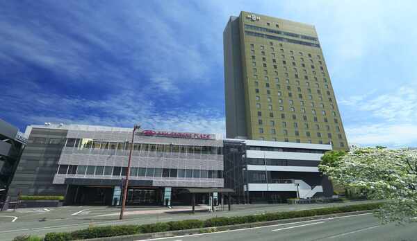 JR「熊本駅」から徒歩約2分、九州各地へのアクセスに優れた立地が魅力のホテル。空港行きリムジンバスや路面電車も利用しやすく、観光やビジネスの拠点にも適したロケーションです。客室は、明るい色調とシンプルなデザインが心地よい空間。ダブルやツイン、ファミリールームなど、さまざまなタイプを用意。畳の小上がりにベッドを配した和モダンな客室や、熊本城をモチーフにした遊び心溢れる客室も揃えています。朝食は、阿蘇の食材をふんだんに取り入れたビュッフェです。また、鉄板懐石やBBQグリル料理などを楽しめるレストランも併設しています。館内には、各種シーンに対応する宴会場や会議室を完備。ホテル周辺には飲食店やコンビニが点在しています。