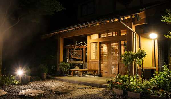 静寂の森に包まれた山里に佇む、数寄屋造りの温泉旅館。離れ形式の客室は全8室。掘りごたつや広縁を備えた8~10畳の和室やハンモックを配した和洋室などを用意。茶室付きの客室も揃えています。全室に露天風呂を完備。客室ごとに、寝湯や釜湯、足湯などの趣向を凝らした湯船も備えています。館内には、大露天風呂や内風呂も併設しており、温泉につかりながら癒やしの時間を過ごすことができます。夕食は、地元の山の幸を使用した田舎風懐石料理です。囲炉裏を設置した食事処で、鹿や猪などのジビエ料理をはじめ、黒毛和牛の溶岩焼きなどをいただくことができます。朝食は、濃厚な豆乳鍋を中心に、目覚めの身体にやさしいメニューを味わうことができます。