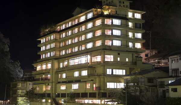 杖立温泉で川に面した大きな3階建ての木造の旅館です。トイレは共通になりますが、川に面した部屋で温泉を楽しめます。風呂は1階にあり、男女で朝夜入れ替えになりますが、どちらも大規模で、露天風呂、蒸し風呂があり、熱い湯とぬるめの湯を楽しめます。蒸し風呂はじっくり汗が出ていいですね。 今回はスタンダードプランで泊まりました。食事は個室の別室でいただきます。夕食は手が込んだ充実の和食で、前菜盛り、刺身、茶わん蒸し、蕎麦小鉢、焼魚、ステーキ、鍋など順番に出てきてとても満足しました。自慢のほうじ茶プリンが最後に出てきます。朝食も温泉蒸し卵、湯豆腐、焼魚など充実の和食です。 古い建物でバリアフリーではないですが、それを気にしない人にはぜひお薦めできる宿です。