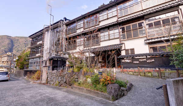 雄大な自然に囲まれた涌蓋山の麓で、温泉に浸かることができます。8種類の貸切風呂は、野趣あふれる大露天風呂をはじめ、高台に位置する展望家族風呂やサウナ付きの内湯、女性専用露天風呂などを完備。四季折々の山々を望める客室は、和室や掘りごたつ付きの和洋室などを用意しています。創業約160年の歴史ある館内は、囲炉裏を設えた情緒あふれる空間が広がっています。コーヒーや紅茶などのドリンクを用意しており、地獄蒸しで調理した温泉玉子をいただくこともできます。