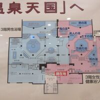 日帰り温泉ツアーで訪問しました。地階に駐車場、エレベーターで1階へ。そしてエスカレーター2つ乗り、更にエレベーターに乗り、カードをタッチすると大浴場に入れます。看板によると日帰り入浴は2250円。バスタオル・フェイスタオルレンタル無料です。広さ1500坪、5つの泉質があります。あつめ、ぬるめ、適温になるよう、湯守が整えているそうです。ドライサウナ、スチームサウナ、水風呂もあります。私が気に入ったのは水温が30度前後の気泡風呂。気持ちよく過ごせました。売店には温泉の素や、お土産なども売っていました。