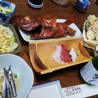 昭和28年 千葉県で第一号の温泉認定、 このフレコミだけで温泉好きは疼いてしまう。 前日にもかかわらず一部屋空いていることをいいことに いざ出陣してしまった。 銚子の旨い魚とこの温泉を確かめたいという気持ちで。 想像していた通り 小さな佇まいの民宿で 路地は狭く大通り側から入るのはすごい困難であった。 入館後早速温泉にまっしぐら。 確かに生きた温泉でさっぱりとした 無味無臭であるが混ざりけのない純粋な100%源泉である。 基本的に沸かしなので 蛇口から出る水は水道水ではなく冷たい源泉である。 その源泉はやや ゆで卵のような硫黄臭が漂い独特である。 露天風呂はないがゆったりと 夕食前に3回も入ってしまった。 そして夕飯は部屋食で、 やや大きめな金目鯛の煮付けと 刺し身、地魚の天ぷら イワシの酢の物など 地元の海鮮づくしである。 やはりこの食事には日本酒だ、 しかし地元の 地酒が出ると思いきや越後酒であった。 とにかく 金目鯛も大きく腹がパンパンに膨れ上がるほど食べられた。 下手に何もない 家にいる週末より、こういうところで発散することの方がいかにも重要である。 またこっちの方のうまい魚を食いに行こう。
