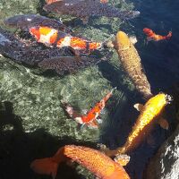 銘石の宿、と銘打ってますがそのとおりですね。街中の温泉街から一歩中に入ると風景が一変、広い中庭を散策すると、大小さまざまな石と流れそれに滝も、鯉が悠然と泳いでいて、別世界のようです。大浴場の露天風呂も大きくて、巨岩に囲まれて青空眺めながら、ダイナミックに浸かれました。 1階露天風呂付き客室に泊まりました。客室縁側まで中庭の流れが来ていて、鯉もやってきます。ここから餌やりができて、夢中になりました。源泉かけ流しの露天風呂は大きくて、数人でもゆったり入れる大きさ、広々です。 中庭も温泉も癒しの宿だと思います。